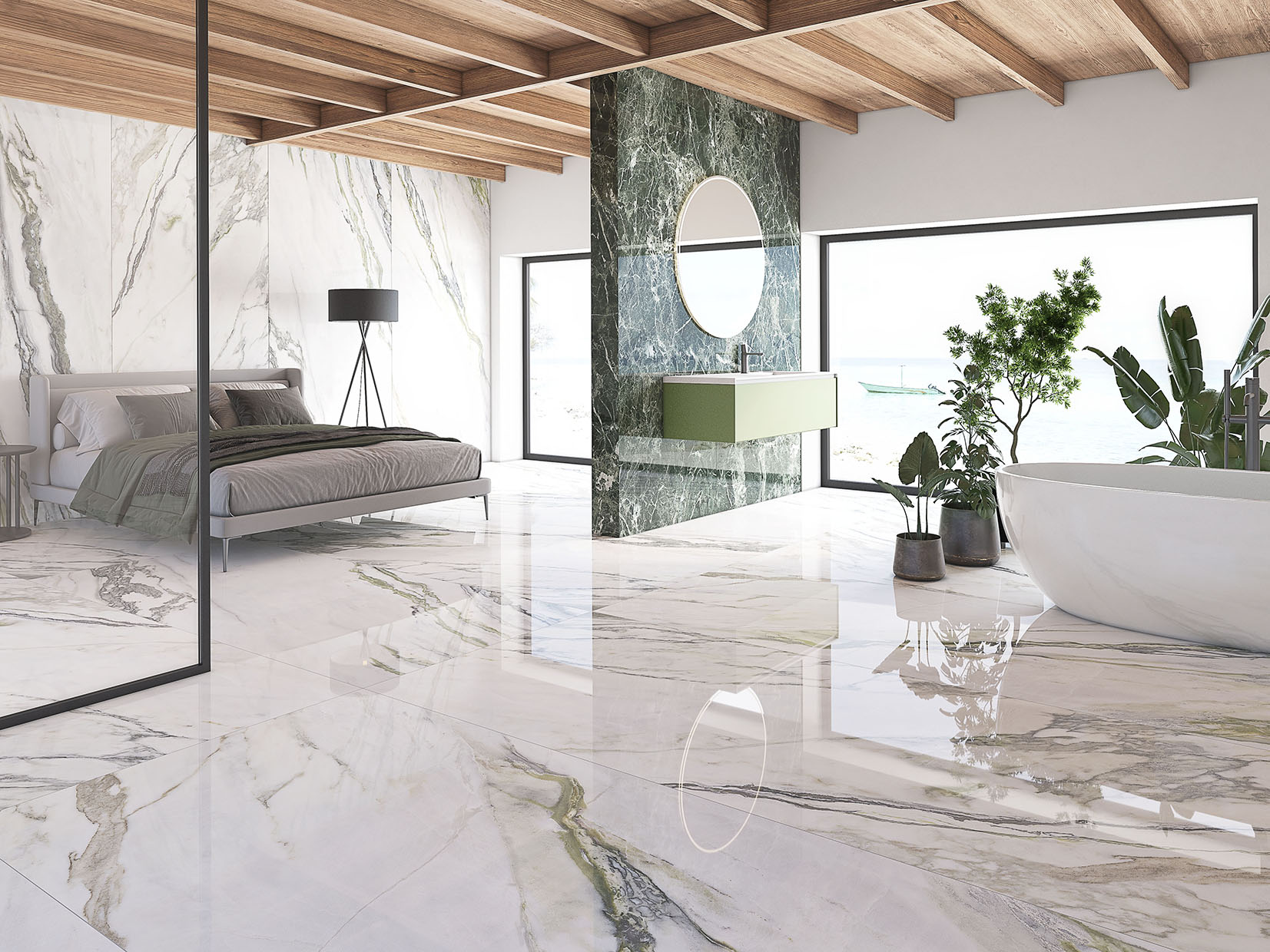 سرامیک کلکته سبز با رگههای روشن و خطوط تیره و قدرتمند از سبز تیره ترکیبی بینظیر از ظرافت و تجمل را به نمایش میگذارد. این طرح، حسی از لوکس بودن را به سرامیک بخشیده است و فضایی گرم و دلباز را به ارمغان آورده است. این محصول در سایز 150x300 با لعاب پولیش و در 5 فیس تولید می گردد.